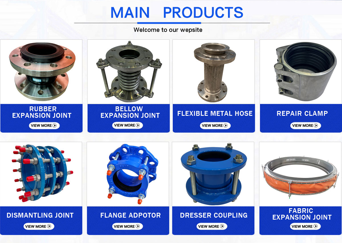 Productos principales:Junta de expansión de goma, junta de desmontaje, junta de expansión de metal, Vavel, abrazadera de reparación de tuberías